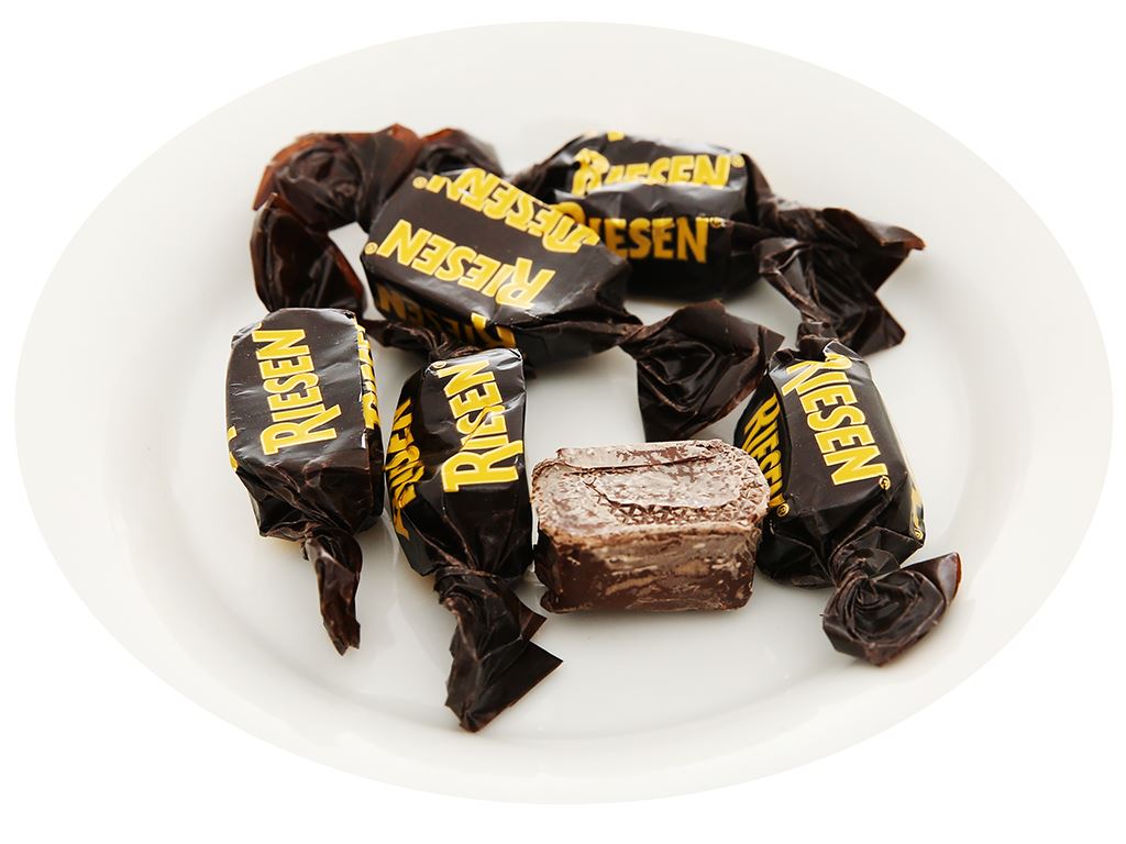 Riesen là thương hiệu kẹo hàng đầu của Đức. Các fan hâm mộ của Riesen trên toàn thế giới vẫn yêu thích hương vị sô cô la đặc biệt đậm đà. Bí mật nằm ở phần nhân caramel đậm đà, được bao phủ bởi một lớp sô cô la đen dày. Sô cô la đen bên ngoài, caramel sô cô la đậm đà bên trong – một món ăn đặc biệt dai dai. Hương vị sô cô la đậm đà đặc trưng của Riesen không thể bắt chước là nhờ sự pha trộn đặc biệt của những hạt ca cao chọn lọc.